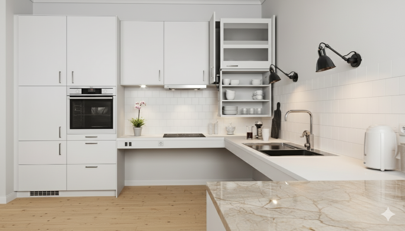 - Höchste Zugänglichkeit: Perfekt geplante, rollstuhlgerechte Küchen und unterfahrbare Elemente.